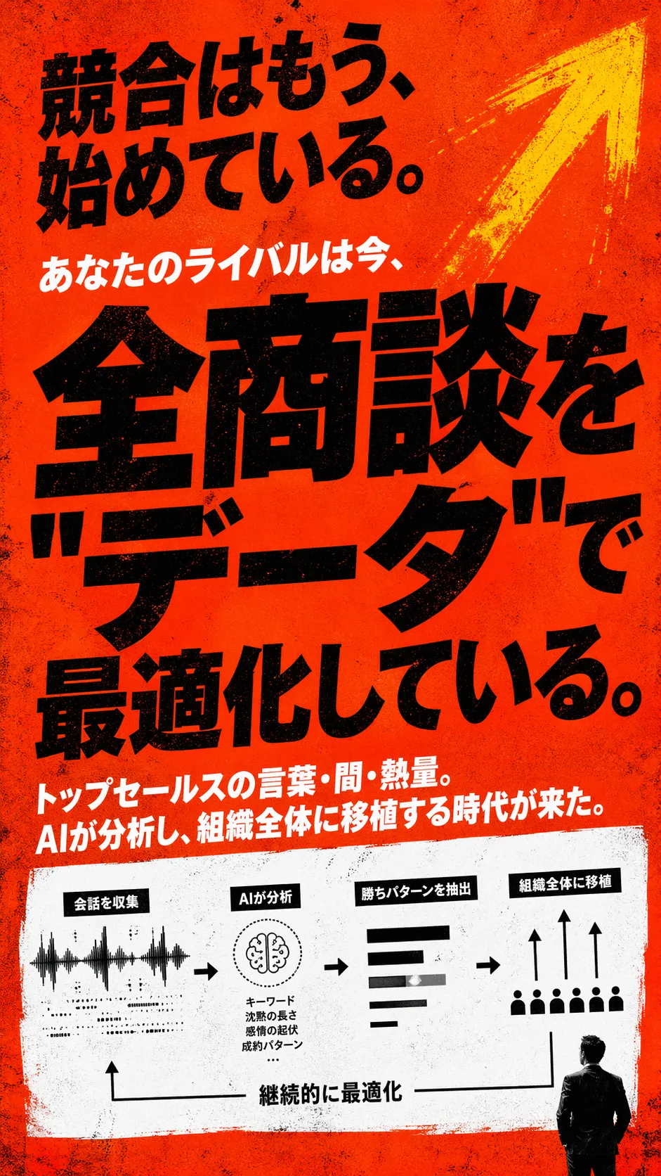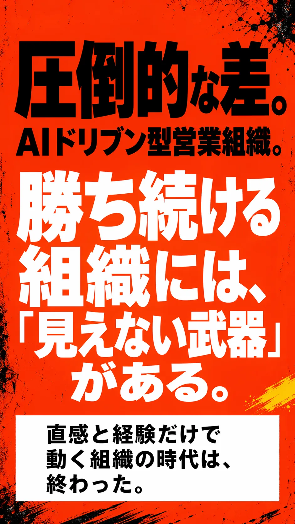 営業に悩む男性が困惑する漫画風シーンと「圧倒的な差」という強いコピー